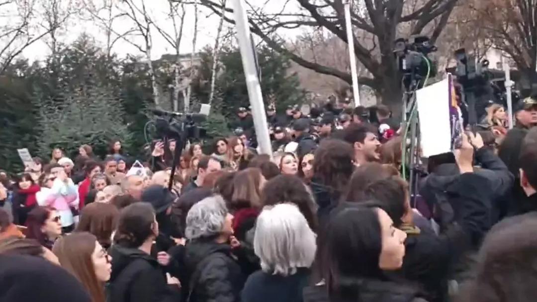 TBMM'deki kadın milletvekilleri ve STK'lar, TBMM'de yaşanan taciz skandalını protesto etti. Meclisinin önünde basın açıklaması yapılmaya çalışılırken emniyet güçleri araya girdi. Kadınlar polis barikatını aşıp basın açıklamasına başladı.