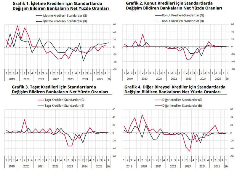 2026 yılının ilk çeyreğinde, bankaların kullandırdıkları işletme kredilerine ilişkin genel beklentileri, uyguladıkları standartlardaki gevşemenin devam edeceği yönündedir.