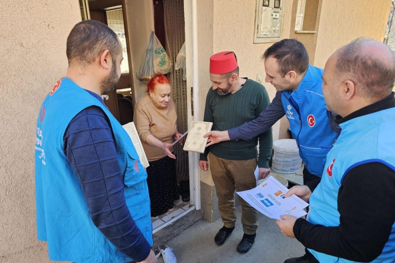 TDV, 2026 yılı Ramazan ayı kapsamında da Kur’an-ı Kerim dağıtımlarına devam ediyor. “Kardeşlerini Unutma, Beklenen Sensin” sloganıyla Ramazan yardım faaliyetlerini yürüten Vakıf, 38 ülkede Arapça, İspanyolca, Fransızca, Boşnakça, İngilizce ve Portekizce olmak üzere 6 farklı dilde yaklaşık 63 bin Mushaf’ın dağıtımını gerçekleştirecek. Yurt içinde de Kur’an-ı Kerim dağıtımları sürecek.