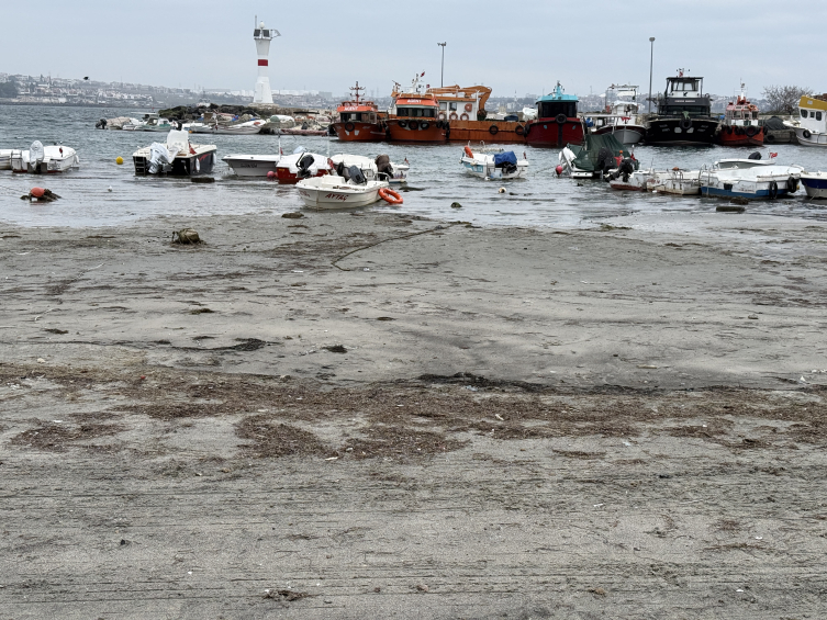 Tekirdağ'ın Marmaraereğlisi ilçe merkezindeki sahilde deniz suyu 10 metre çekildi.
