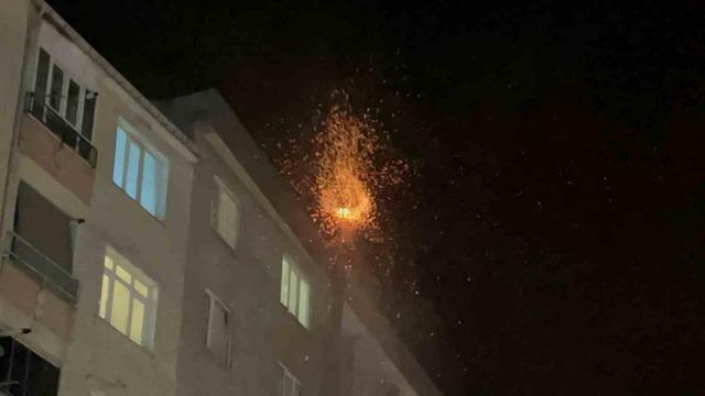Tekirdağ’da bacadan alev püskürdü, geceyi aydınlattı