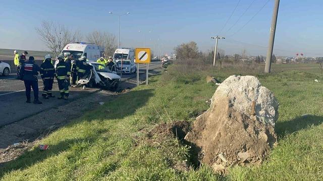 Kaza, Önerler Mahallesi İstanbul yolu üzeri Asker Havaalanı mevkiinde meydana geldi. Çorlu istikametine seyreden N.D. idaresindeki otomobil, sürücüsünün direksiyon hakimiyetini kaybetmesi sonucu yoldan çıkarak şarampole girdi. Beton bloğa çarpan otomobil hurda yığına döndü. Kaza sonrası sürücü ve araçta yolcu olarak bulunan 1’i çocuk 4 yolcu (B.D., S.D., Ö.A.D. ve M.D.) yaralandı. Yaralılar, olay yerine gelen sağlık ekiplerinin ilk müdahalesinin ardından ambulanslarla Çorlu Devlet Hastanesi’ne ve özel hastanelere sevk edildi. Kazayla ilgili jandarma tarafından inceleme başlatıldı.