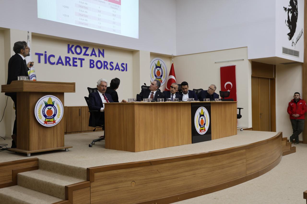 Adana'nın Kozan ilçesinde "Deprem Gerçeğiyle Yaşamak" paneli düzenlendi. Panelde Prof. Dr. Abdulazim Yıldız, Prof. Dr. Ahmet Beycioğlu, Prof. Dr. Barış Binici, Prof. Dr. Mustafa Laman ve Prof. Dr. Ulvi Can Ünlügenç de deprem riskleri, Adana'nın yapı stoku ve aktif faylar üzerine sunum yaptı.