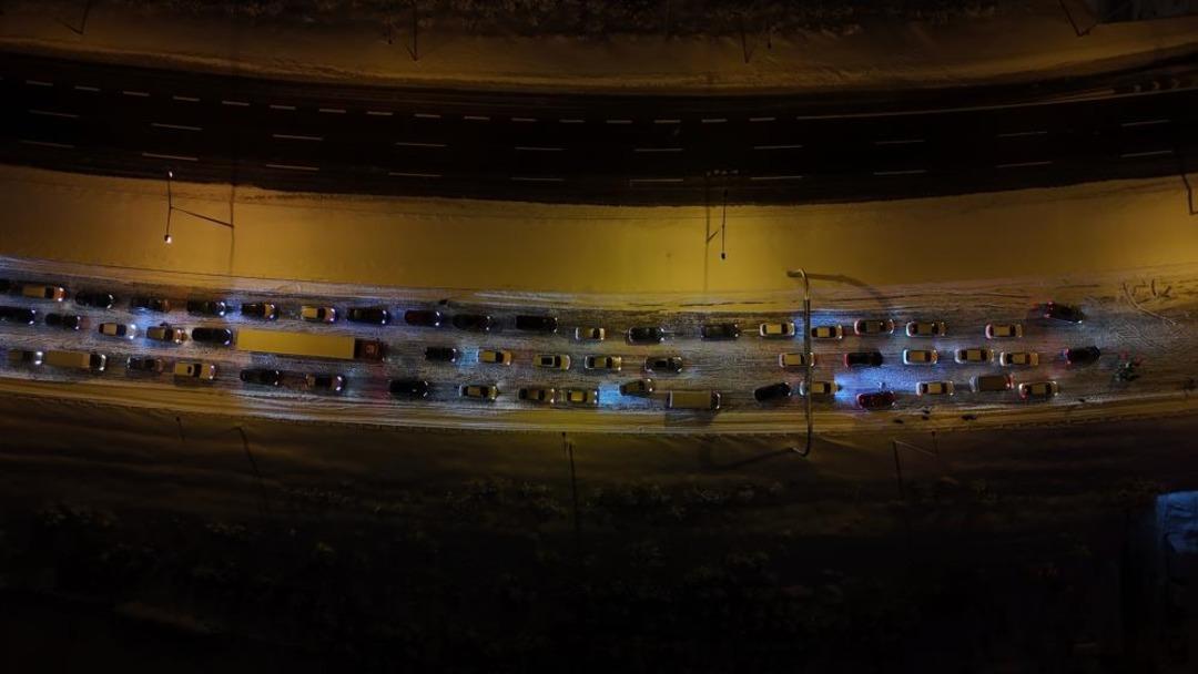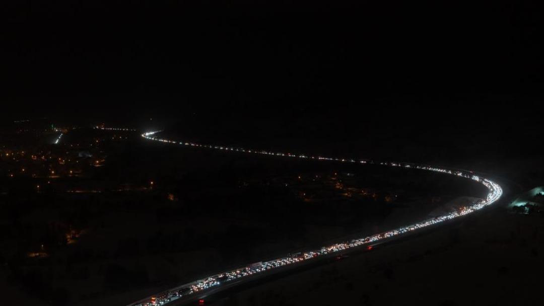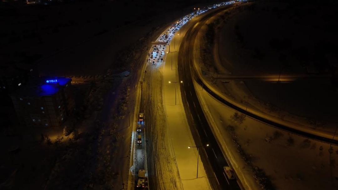 Saatlerdir yapılan çalışmalar sonucunda yolda kalan araçlar kaldırıldı. Trafik her iki şeritten de sağlanmaya başlandı. Yolun ulaşıma açılmasıyla birlikte biriken araç trafiği havadan görüntülendi.