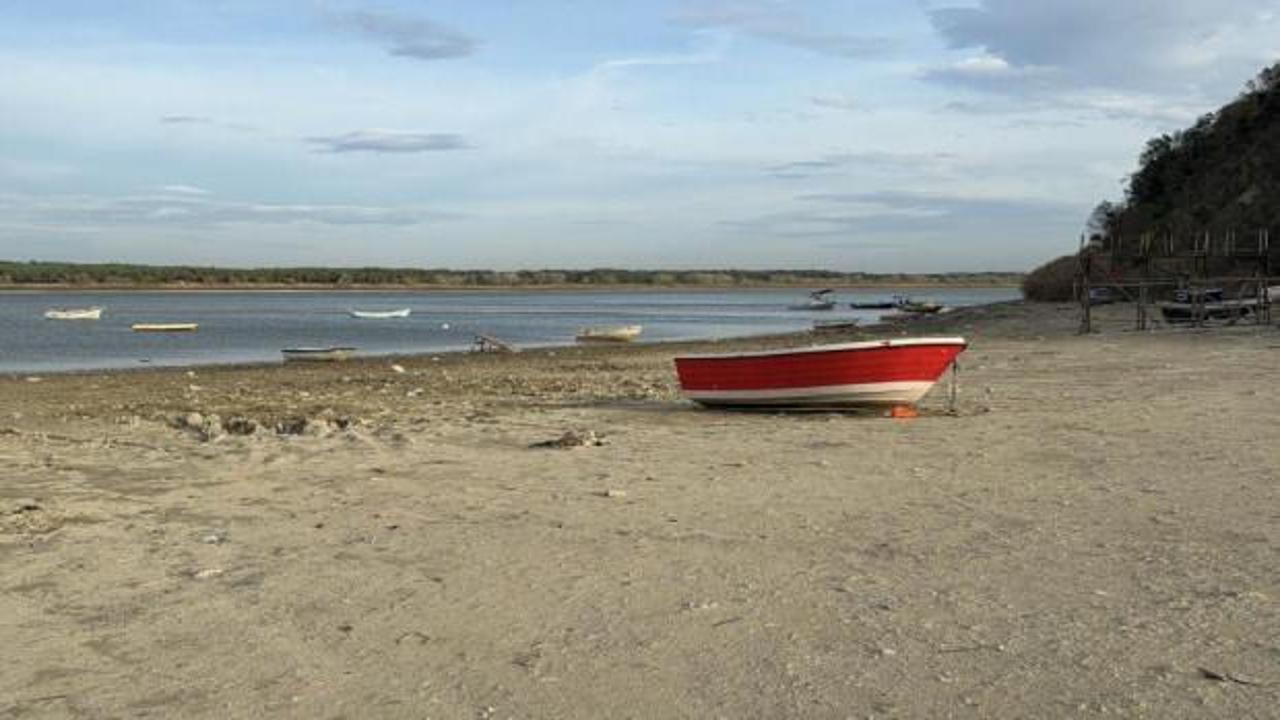 Görüntülerde, karaya oturan tekneler, toprak üzerinde kalan iskele ve suyun kıyıdan metrelerce uzaklaştığı net şekilde görüldü.