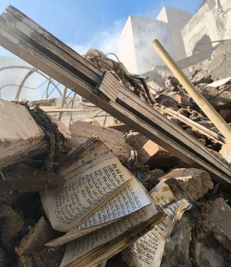 "Bakın, hayvan derisine elle yazılmış kutsal Tevrat hala gömülü. İnsanlar, onu kurtarmaya çalışıyor. Sabah saatlerinden beri İran Yahudi Toplumu büyük bir üzüntü içerisinde."