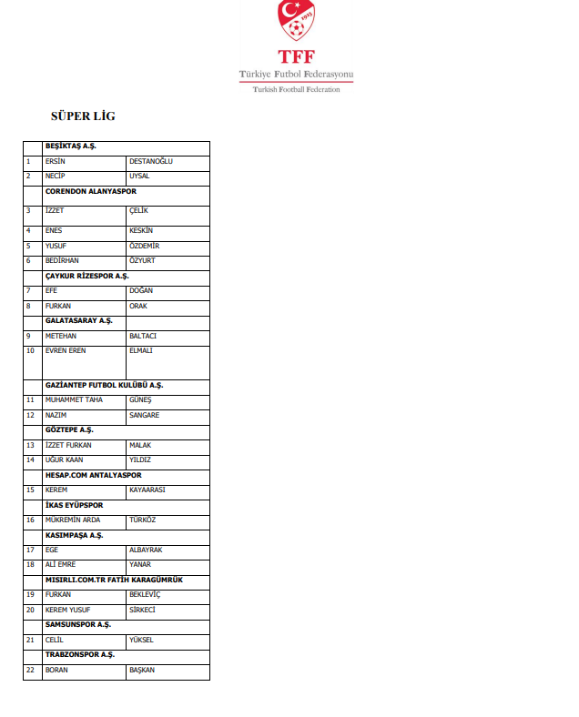 Türkiye Futbol Federasyonu'nca profesyonel liglere yönelik olarak yürütülen bahis soruşturması kapsamında bahis oynadığı tespit edilen 1024 futbolcunun Futbol Disiplin Talimatı'nın 57. maddesi uyarınca 10.11.2025 tarihinden itibaren tedbirli olarak PFDK'ya sevk edilmesine karar verilmiştir.