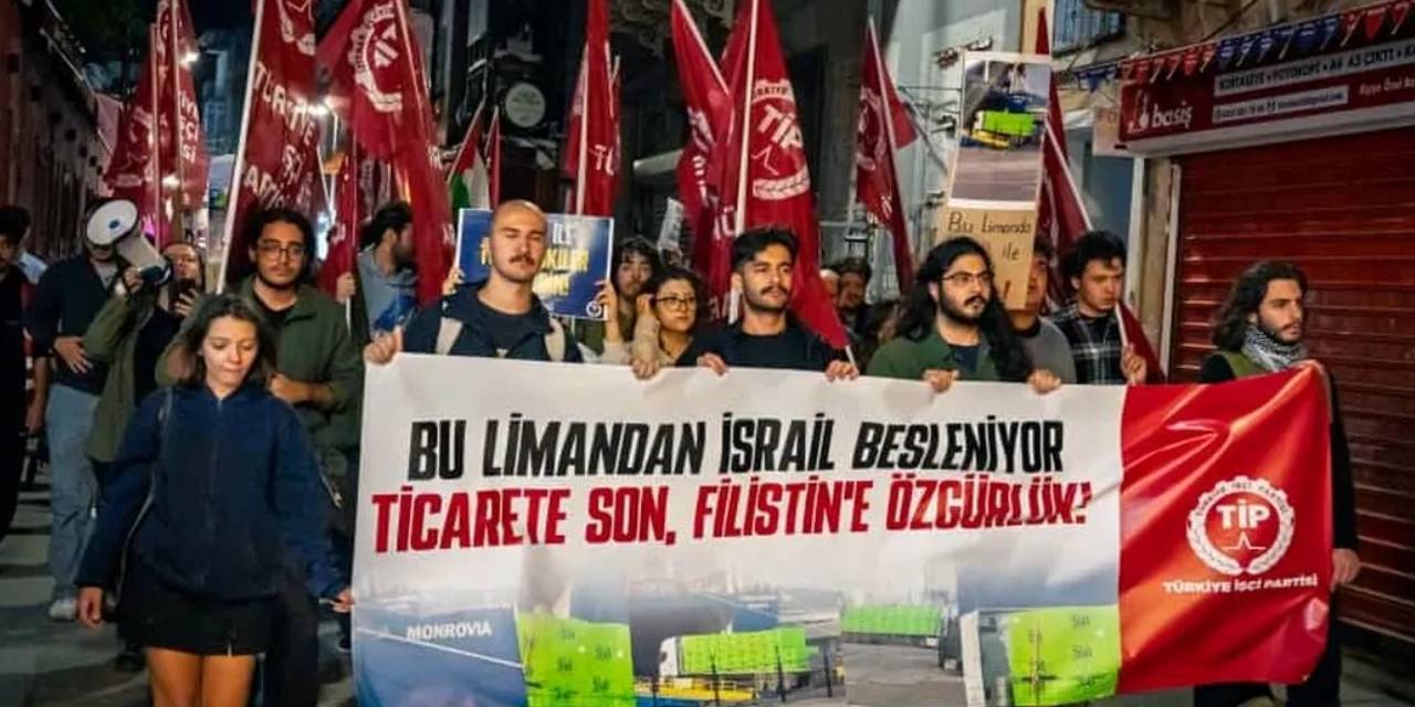 TİP İzmir İl Örgütü, Ticaret Bakanlığının Türkiye ile İsrail arasındaki ticaretin sıfırlandığına yönelik açıklamalarının gerçeği yansıtmadığı ve İsrail ile ticaretin sürmesini protesto etmek amacıyla bugün İzmir Limanı’nda bir eylem düzenledi.