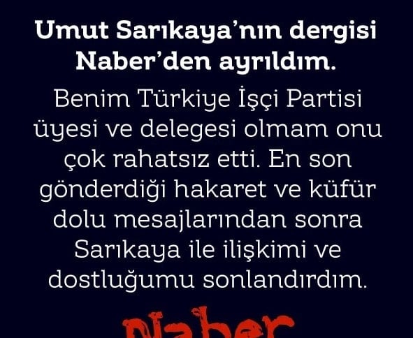 Paylaşımında, Sarıkaya’dan hakaret ve küfür içeren mesajlar aldığını, bu nedenle dostluk ve çalışma ilişkisini sonlandırdığını söyledi.