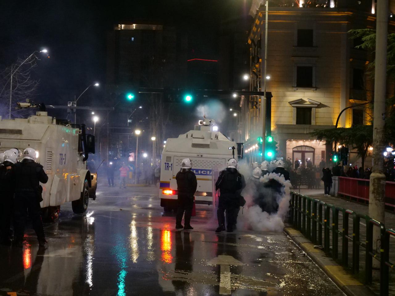 Polis, göstericilere göz yaşartıcı gaz ve tazyikli suyla müdahale etti.