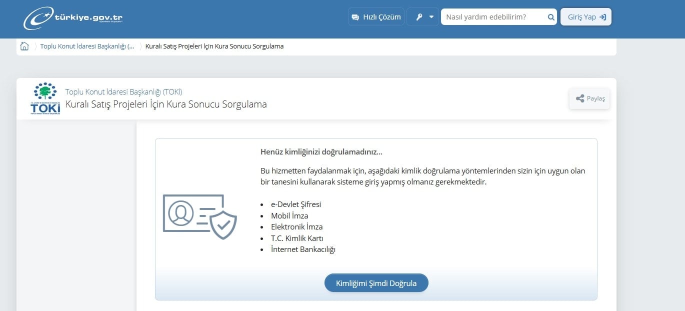 E-DEVLET TOKİ SONUÇ SORGULAMA EKRANI