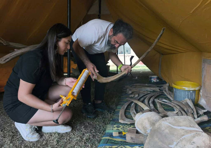 Toprak altından çıkarılan Fin balinasının iskeleti puzzle gibi birleştiriliyor