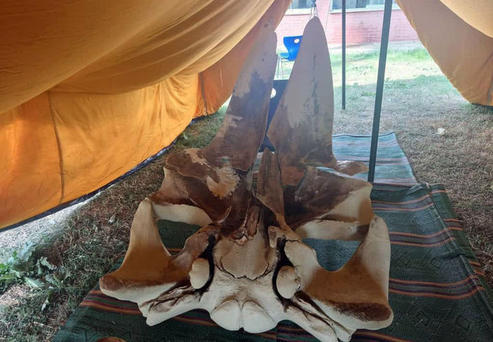 Yaklaşık bin parçalı balinanın iskeleti, kampüs bahçesinde MEÜ Su Ürünleri Fakültesi İşleme Teknolojisi Anabilim Dalı Öğretim Üyesi Prof. Dr. Deniz Ayas öncülüğünde özenle birleştiriliyor.