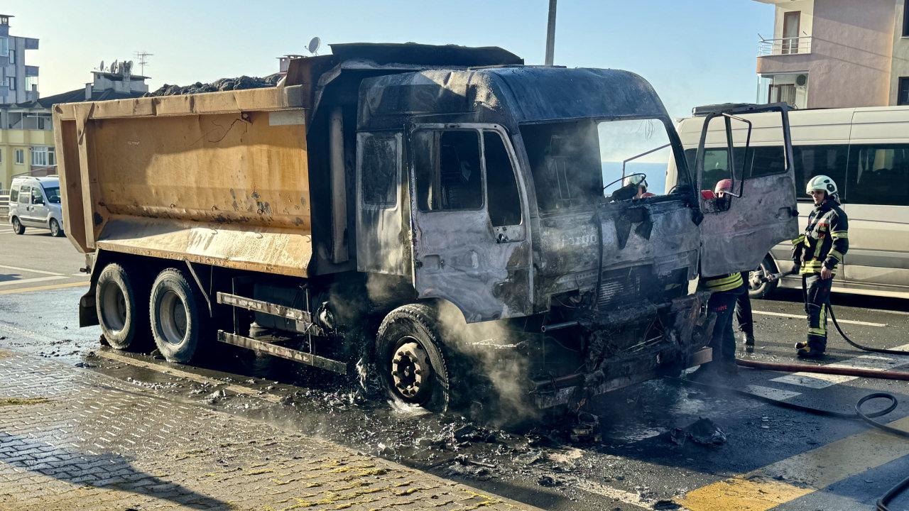Trabzon'un Ortahisar ilçesinde Ahmet Ş. idaresindeki 61 ACC 482 plakalı hafriyat yüklü tırın motor kısmından 2 No'lu Beşirli Mahallesi Kanuni Bulvarı'nda seyir halindeyken henüz bilinmeyen nedenle dumanlar yükselmeye başladı.