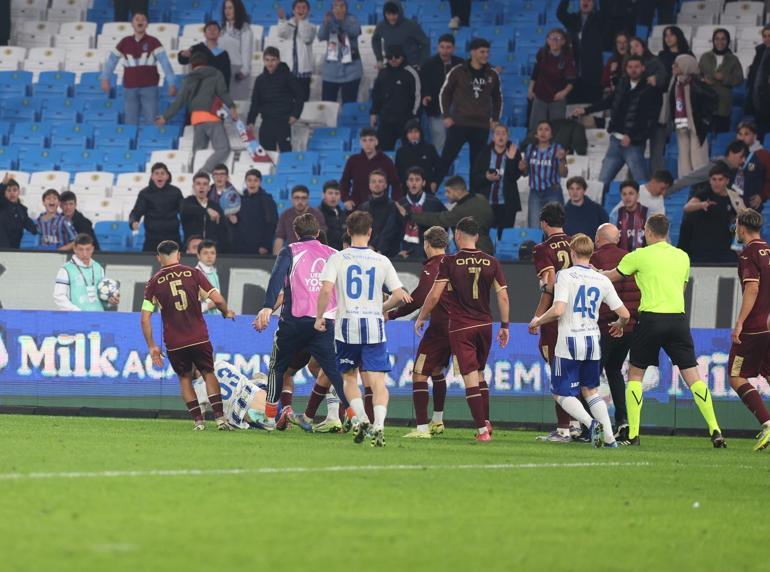 Öte yandan maçın bitiş düdüğü sonrası HJK Helsinki’nin 53 numaralı oyuncusu Jere Kari’nin tribündeki taraftarlara el hareketi yaptığı iddiası gerginliğe neden oldu. Yaşananlar tribün ve saha kenarında tepkilere yol açarken, ortam bir anda gerildi. İki takım oyuncuları arasında kısa süreli sözlü ve itişmeli gerginlik çıkınca, sahaya giren güvenlik görevlileri ve teknik ekipler araya girerek futbolcuları birbirinden uzaklaştırdı. Koridora doğru oyuncuların yöneldiği sırada yeniden gerginlik çıkınca, bu kez çevik kuvvet polisleri araya girerek yaşananların büyümesini engelledi.