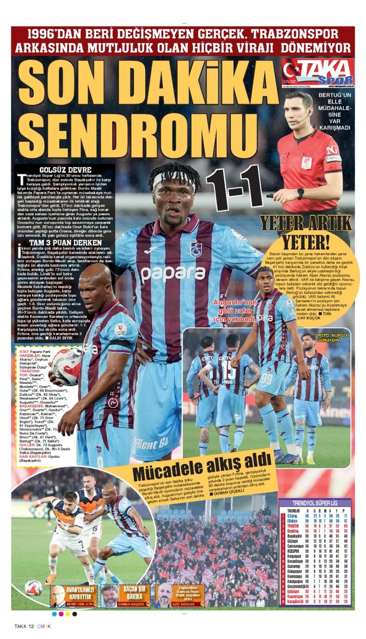 Trabzon yerel basın manşetleri şu şekilde:Taka: Son dakika sendromu