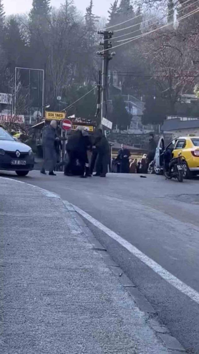 Olay, merkez Osmangazi ilçesi Hüdavendigar Mahallesi’nde meydana geldi. Edinilen bilgiye göre, ticari taksi ile motosiklet sürücüsü arasında yol verme meselesi yüzünden tartışma çıktı. Kısa sürede büyüyen tartışma, tekme ve yumrukların havada uçuştuğu kavgaya dönüştü.