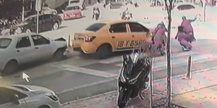 Yaya geçidinde duran taksiye otomobil çarptı! Anne ve bebeği yaralandı