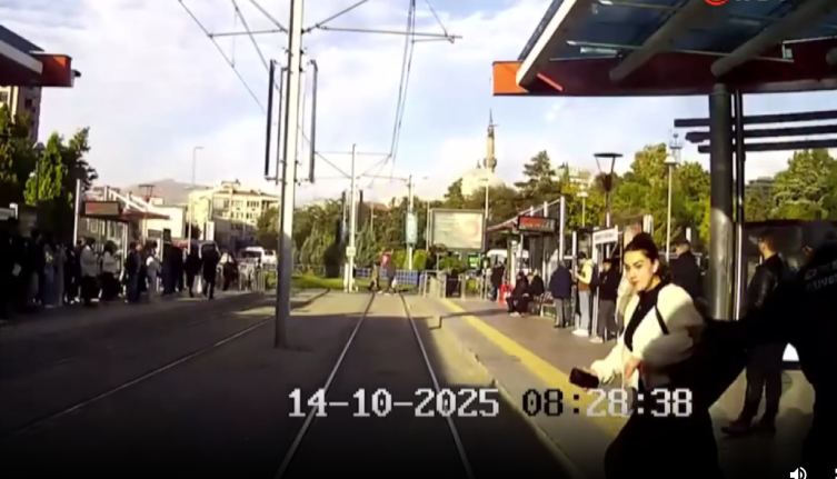 Cumhuriyet meydanındaki raylı sistem hattında meydana gelen olayda; kulaklığı takılı olduğu için çevresini fark edemeyen genç kız, karşıya geçmek için tramvay yoluna doğru hamle yaptı. Durumu fark eden güvenlik görevlileri son anda genç kızı çekerek tramvayın altında kalmaktan son anda kurtardı.