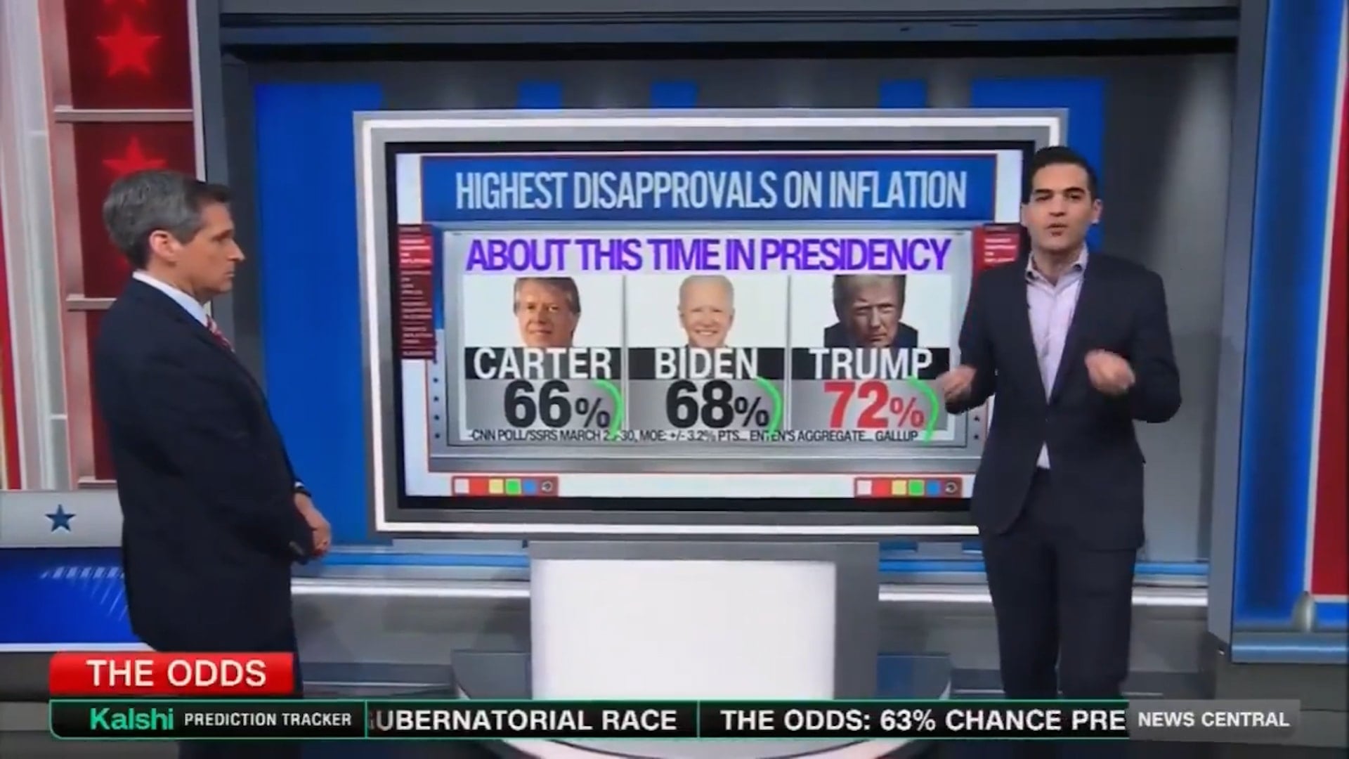 Ekonominin ana belirleyicisi olan enflasyon konusunda halkın sabrı taşmış durumda. Enten’ın paylaştığı tabloya göre, bir başkanlık döneminin bu aşamasında ulaşılan %72’lik memnuniyetsizlik oranı, ABD tarihinin en kötü rakamlarından biri. 1978’de enflasyon krizinin ortasındaki Jimmy Carter %66, Joe Biden ise kendi döneminde %68 oranında tepki alırken; Trump bu her iki ismi de geride bırakarak "onaylanmama" rekoru kırdı. Enten, "Joe Biden ve Jimmy Carter gibi isimleri enflasyon konusunda geçiyorsanız, durumunuz gerçekten vahimdir" dedi.