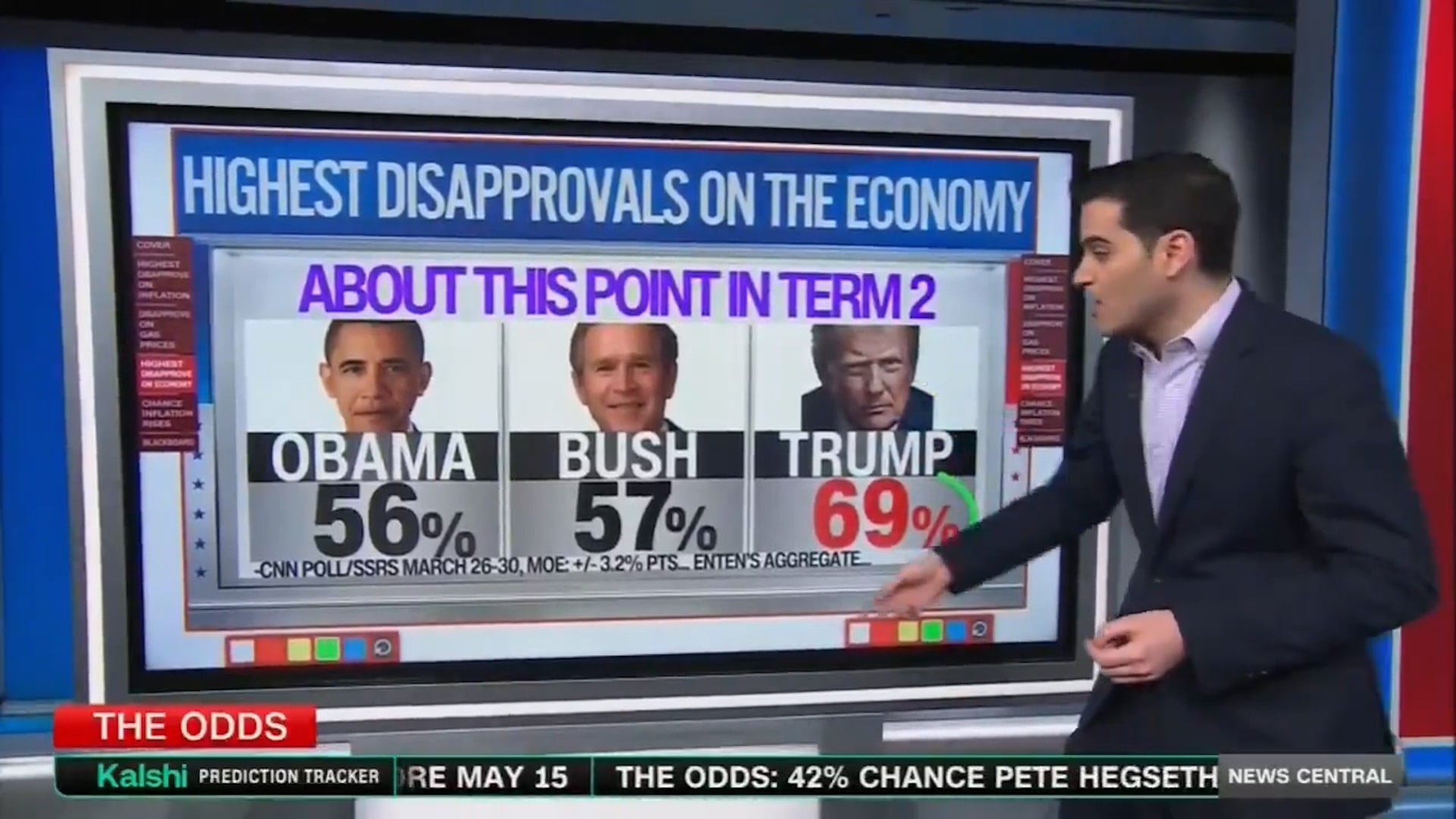 ABD’de Beyaz Saray yönetimi, son yılların en ağır ekonomik algı kriziyle karşı karşıya. CNN ekranlarında yayınlanan son anket verileri, Başkan Trump’ın ekonomi yönetiminin halk nezdinde tam bir "enkaza" dönüştüğünü tescilledi. Verileri yorumlayan analiz uzmanı Harry Enten, "Bu bir 1 Nisan şakası değil, bu bir felaket. Tüm bu veriler Başkan Trump için tam bir yıkım anlamına geliyor" ifadelerini kullandı.