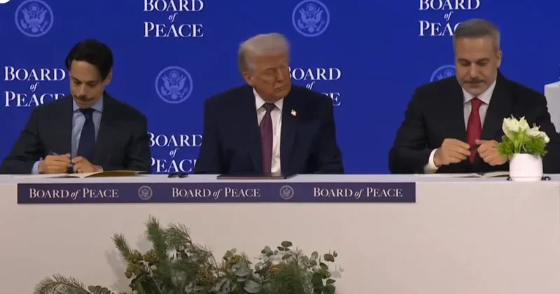 ABD Başkanı Donald Trump Barış Kurulu'nu kurmak için Davos'ta Dışişleri Bakanı Hakan Fidan'ın da dahil olduğu dünya liderleriyle bir araya geldi.
