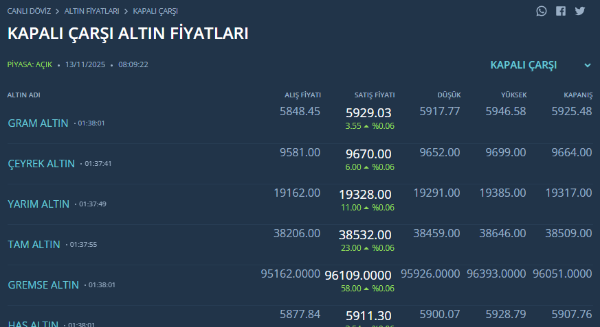 KAPALI ÇARŞI ALTIN FİYATLARI
