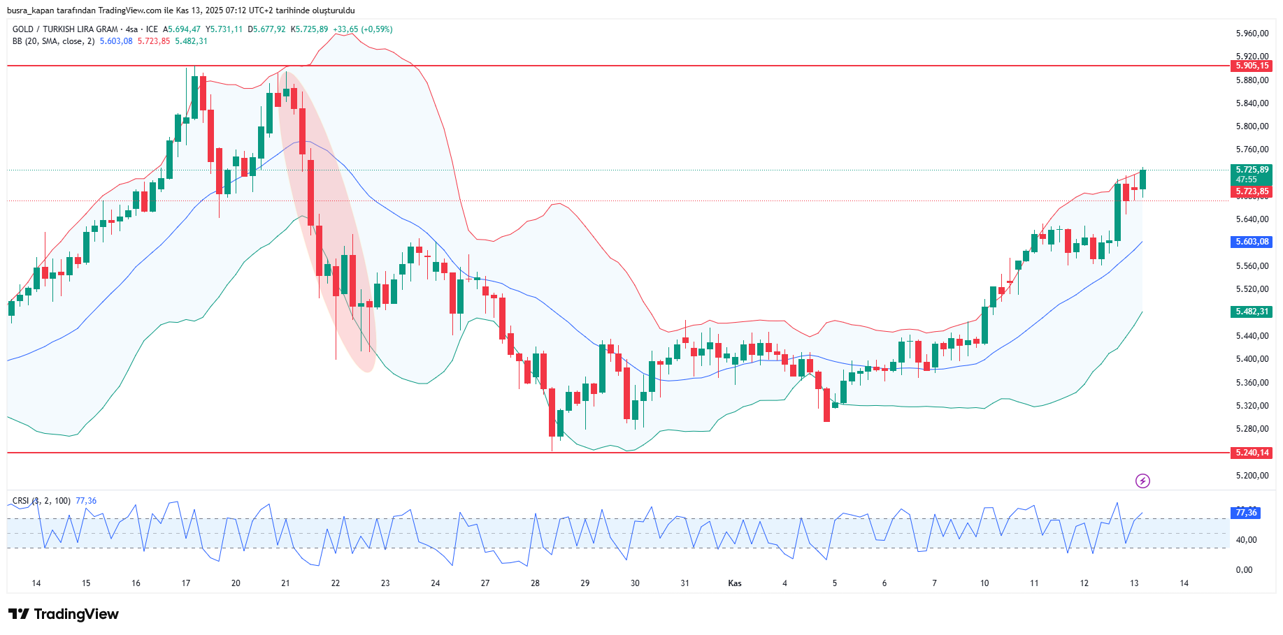 Gram altın, dolar/TL kurundaki yükselişe ons altındaki yukarı yönlü hareketlenmelerin etkisiyle, yönünü yukarı çevirdi. Gram altın sabah seansında 08.05'te 5 bin 722 lirada bulunuyor.