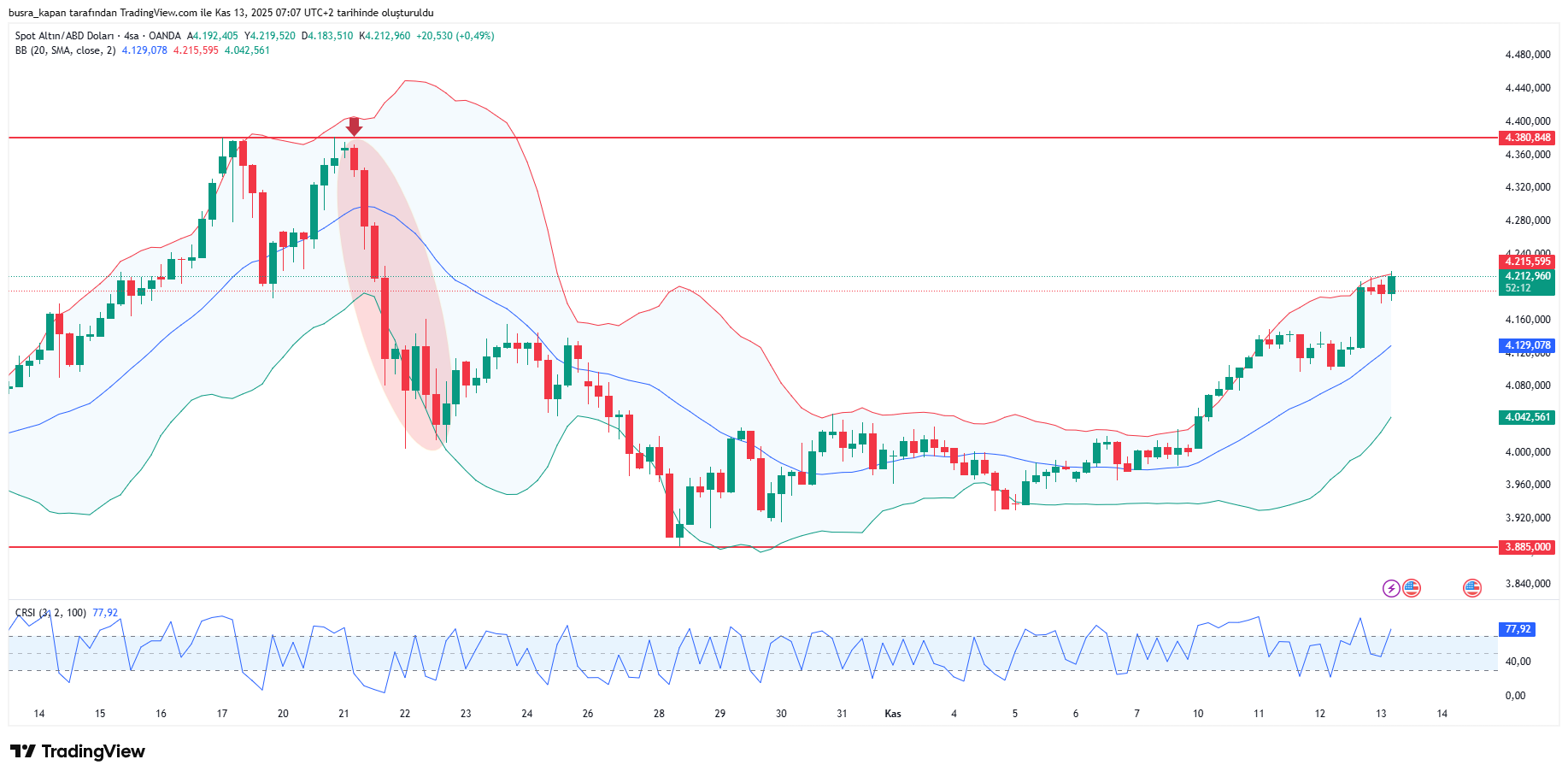 Yaşanan gelişmeleri piyasalar olumlu karşıladı. Ons altın sert yükselişler yaşayarak sabah 08.05'te 4 bin 213 dolarda yukarı yönlü hareketleniyor.