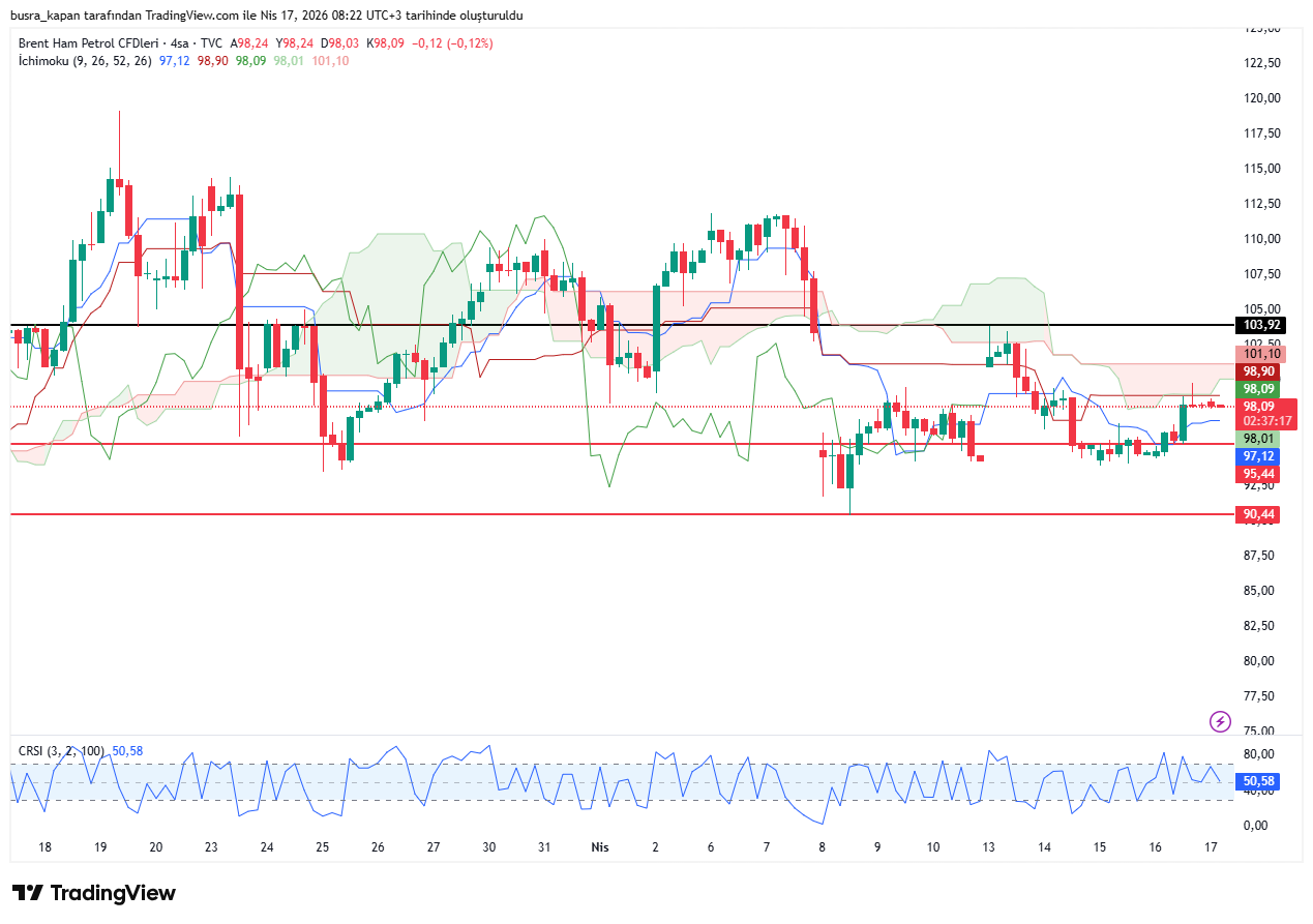 Petrol fiyatları haftanın son işlem gününde Trump'ın kalıcı barış mesajlarına rağmen yatay bir seyir sergiliyor. Brent petrol bugün sabah seansında 08.18'de 98 dolarda bulunuyor.