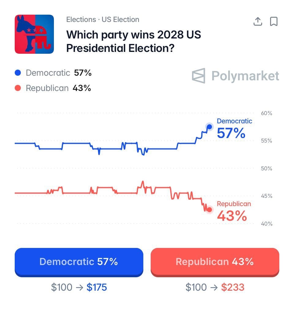Amerikan siyasetinde "anket devri" resmen kapandı, "tahmin piyasaları" dönemi başladı. 2024 seçimlerinde geleneksel şirketlerin aksine Donald Trump’ın galibiyetini bilen dev platform Polymarket, 2028 seçimleri için ilk bombayı patlattı. Bahisçiler, Trump yönetiminin ilk aylarındaki yüksek tansiyonun ardından rotayı keskin bir şekilde Demokratlara kırdı.