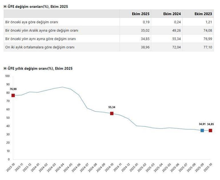 TÜİK, Ekim 2025 dönemine ilişkin hizmet üretici fiyat endeksi verilerini açıkladı. Buna göre, hizmet üretici fiyatları, ekim ayında bir önceki aya göre yüzde 0,19, bir önceki yılın aralık ayına göre yüzde 35,02, bir önceki yılın aynı ayına göre yüzde 34,85 ve 12 aylık ortalamalara göre yüzde 38,96 arttı.
