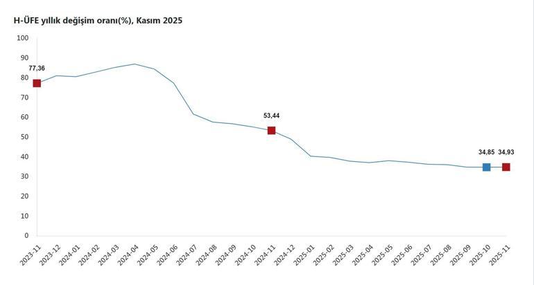 TÜİK, Kasım 2025 dönemine ilişkin hizmet üretici fiyat endeksi verilerini açıkladı. Buna göre; hizmet üretici fiyatları, kasım ayında bir önceki aya göre yüzde 0,70 azalış, bir önceki yılın aralık ayına göre yüzde 34,07 artış, bir önceki yılın aynı ayına göre yüzde 34,93 artış ve on iki aylık ortalamalara göre yüzde 37,71 artış gösterdi. Bir önceki yılın aynı ayına göre; ulaştırma ve depolama hizmetlerinde yüzde 31,51 artış, konaklama ve yiyecek hizmetlerinde yüzde 36 artış, bilgi ve iletişim hizmetlerinde yüzde 35,19 artış, gayrimenkul hizmetlerinde yüzde 42,22 artış, mesleki, bilimsel ve teknik hizmetlerde yüzde 39,35 artış, idari ve destek hizmetlerde yüzde 38,49 artış gerçekleşti. Bir önceki aya göre; ulaştırma ve depolama hizmetlerinde yüzde 0,09 azalış, konaklama ve yiyecek hizmetlerinde yüzde 1,91 azalış, bilgi ve iletişim hizmetlerinde yüzde 2,15 artış, gayrimenkul hizmetlerinde yüzde 8,57 azalış, mesleki, bilimsel ve teknik hizmetlerde yüzde 0,75 artış, idari ve destek hizmetlerde yüzde 1,29 azalış gerçekleşti.