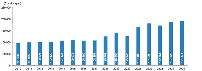 Velayete verilen çocuk sayısı, 2010-2025
