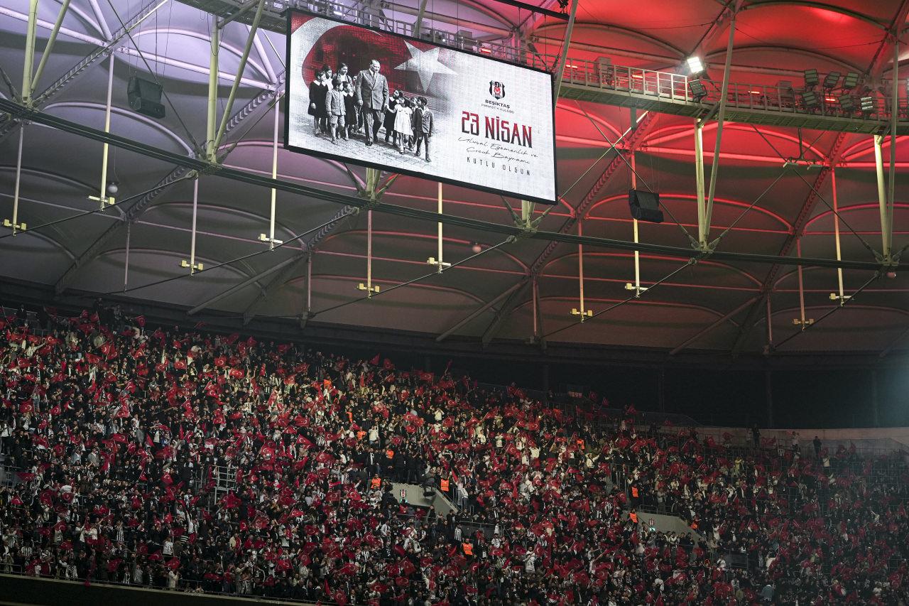 Siyah-beyazlı taraftarlar, yaklaşık 40 bin Türk bayrağıyla büyük bir görsel şölen oluşturdu.