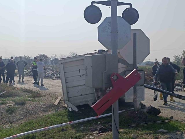 Turgutlu’da hemzemin geçitte kaza: Kamyonetin kasası koptu