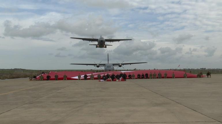 Bayrağımız, standart bir basketbol sahasından 241,5 metrekare daha büyük. Denge için kullanılan kurşun plaka 50 kilogram. Tandem sistem toplam yükü 203 kilogram. Bir önceki rekor (531,2 metrekare) 2005 yılında kırılmıştı. Türk askeri gökyüzünde de destan yazmaya devam ediyor" denildi.