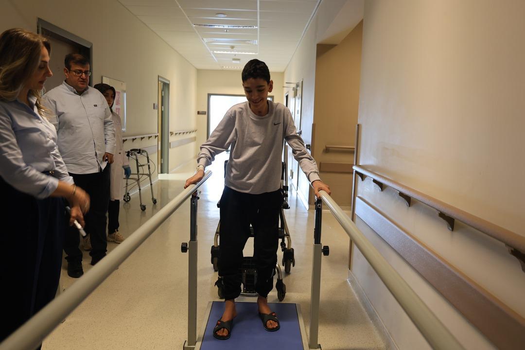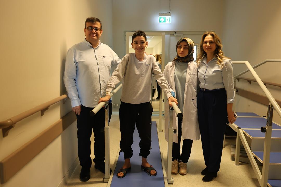 Hastanede 2 yıl boyunca omurilik iltihabı tedavisi gören Aziz Enül, sedyeyle geldiği hastaneden destekli bir şekilde yürüyerek çıkmanın mutluluğunu yaşadı.