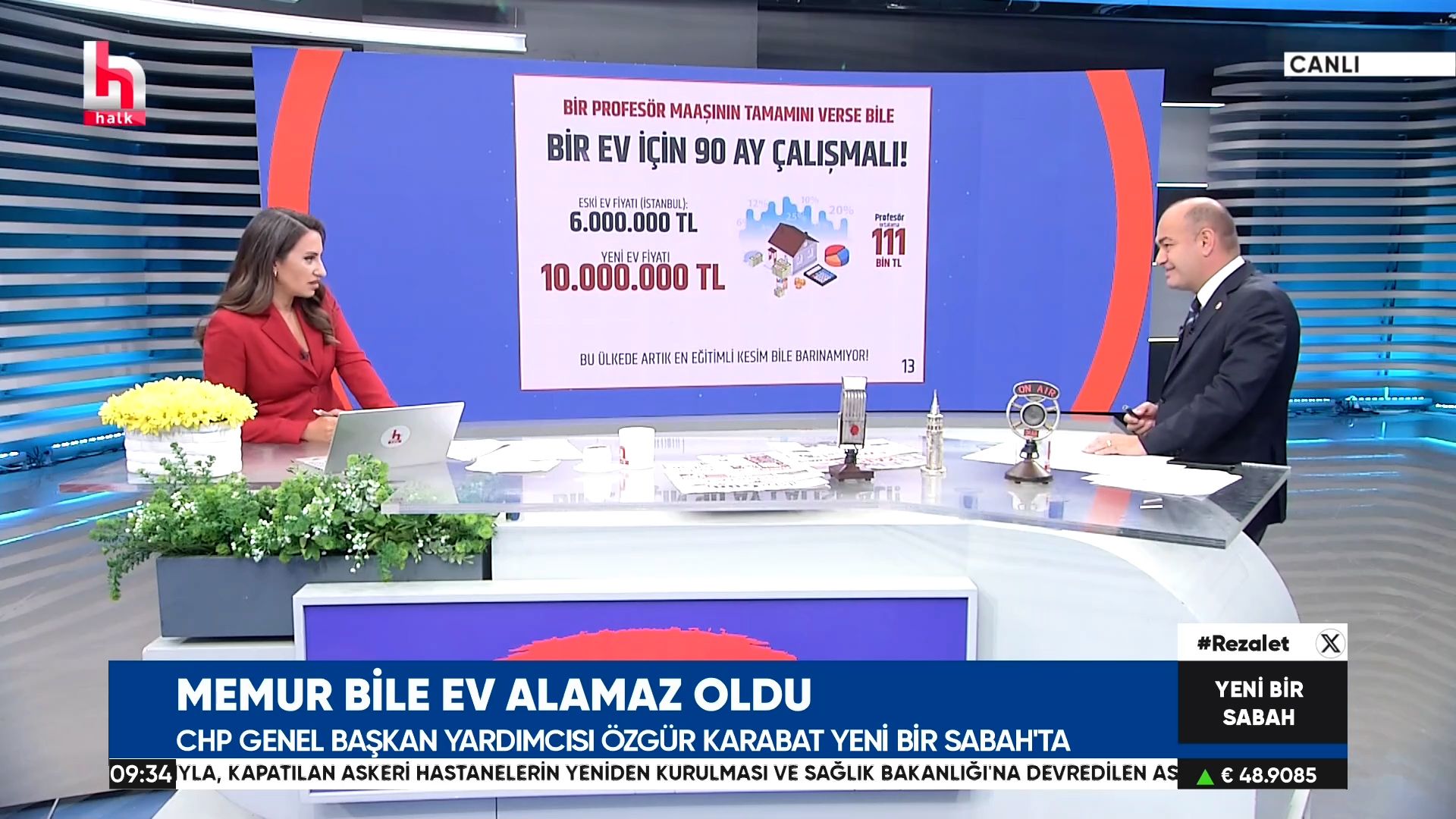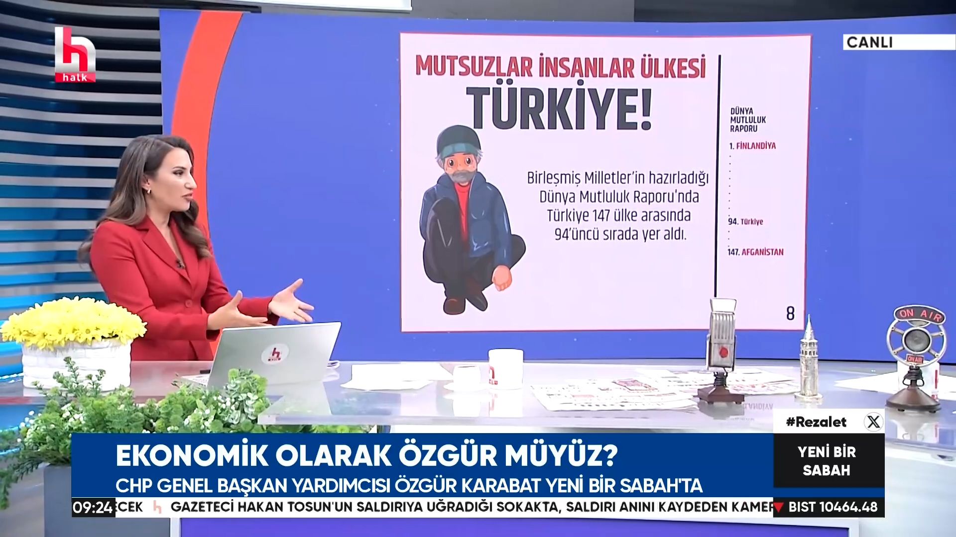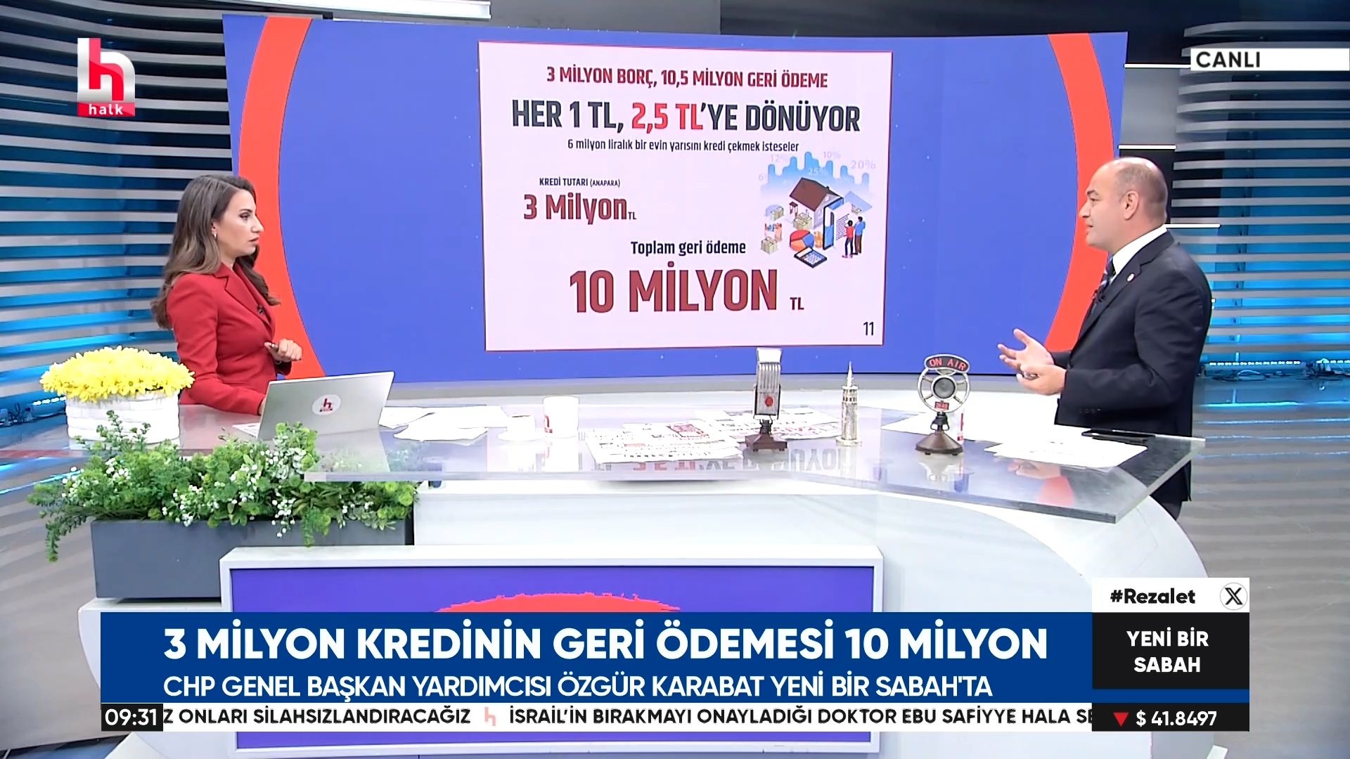 CHP Genel Başkan Yardımcısı Özgür Karabat, Halk TV’de Gözde Şeker'in sunduğu “Yeni Bir Sabah” programında Türkiye’deki ekonomik tabloyu görseller eşliğinde değerlendirdi. Karabat, hükümetin yarattığı refah algısının gerçeği yansıtmadığını söyledi: