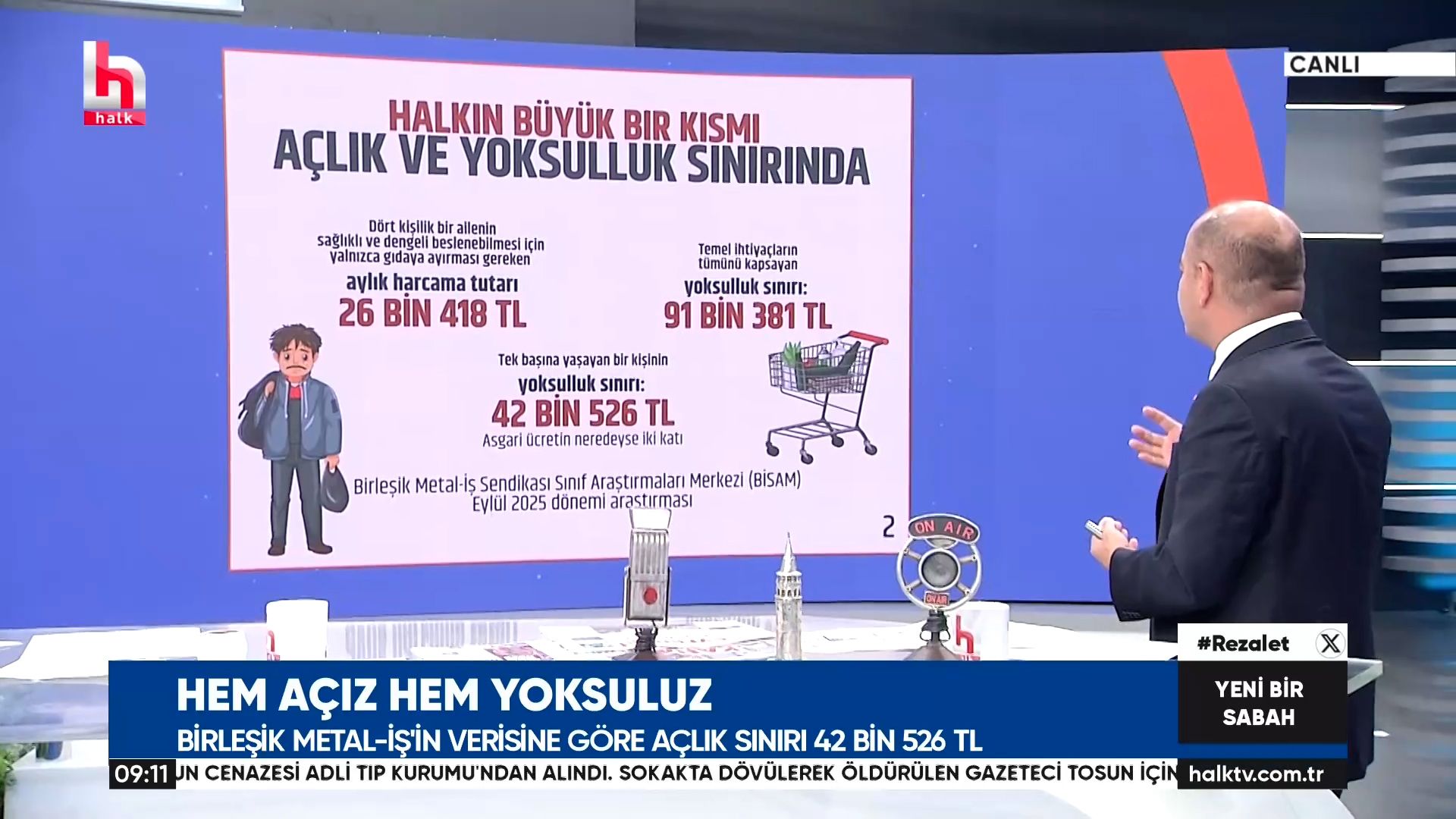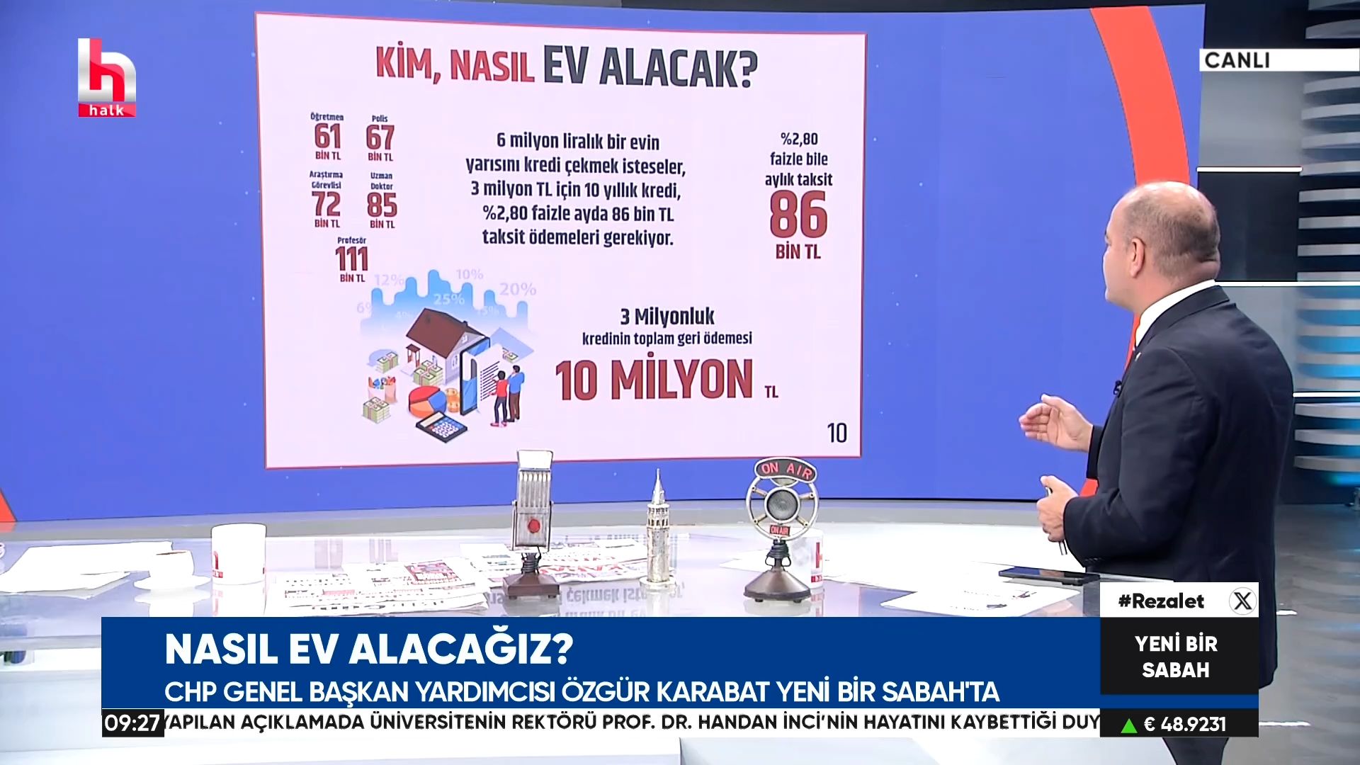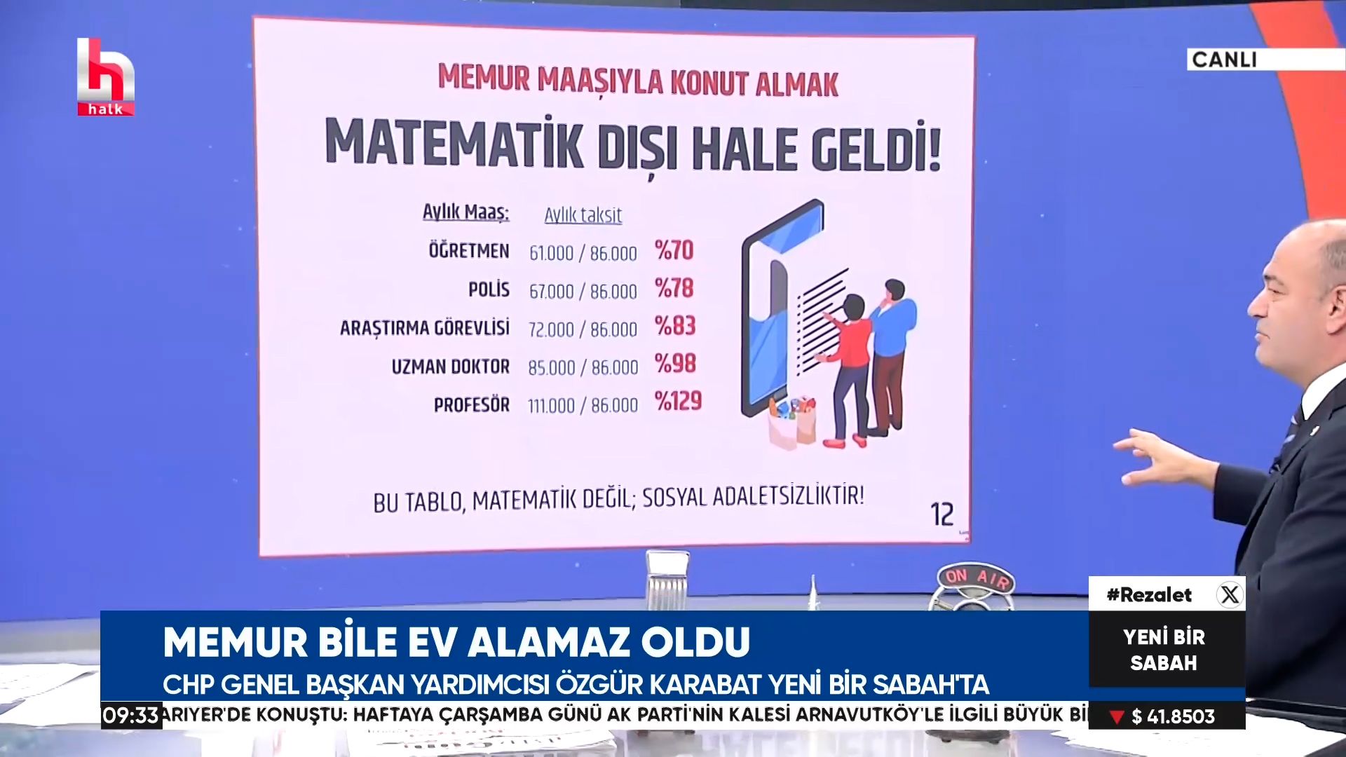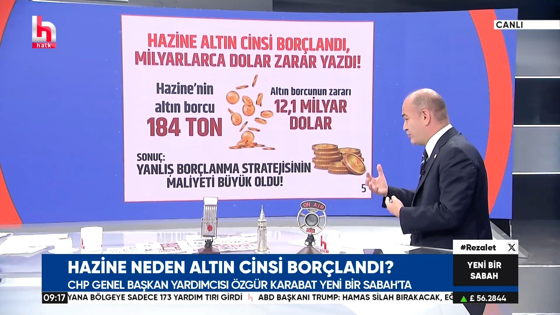 CHP Genel Başkan Yardımcısı Özgür Karabat, Halk TV’de Gözde Şeker'in sunduğu “Yeni Bir Sabah” programında Türkiye’deki ekonomik tabloyu görseller eşliğinde değerlendirdi. Karabat, hükümetin yarattığı refah algısının gerçeği yansıtmadığını söyledi:
