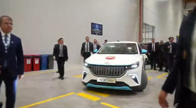 Erdoğan, törenin gerçekleştiği fabrikaya özel tasarım bir TOGG otomobili ile geldi.
