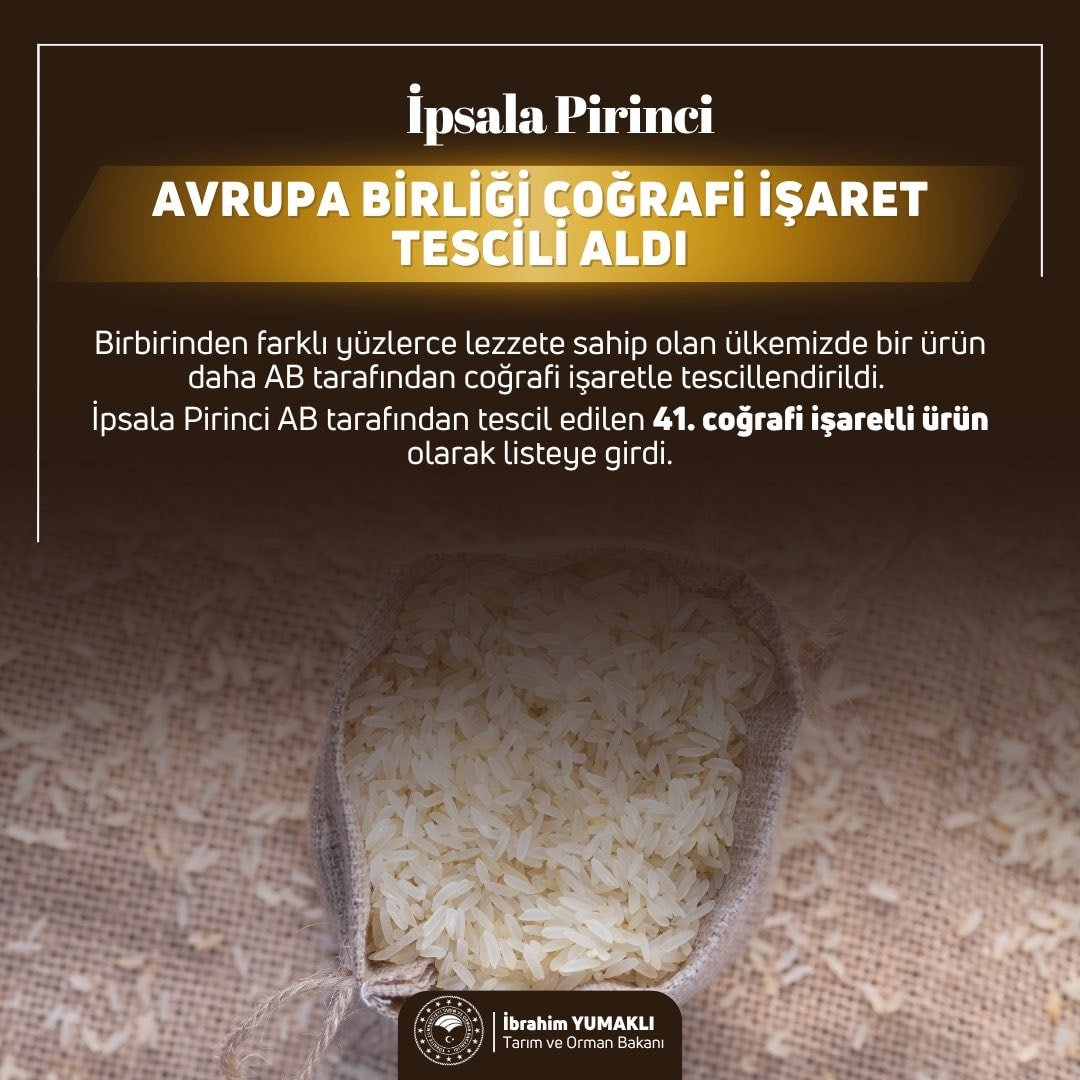Paylaşılan bilgilere göre, İpsala pirinci AB’den tescil edilen 41’inci, Bursa kestane şekeri ise 42’nci Türk ürünü oldu.