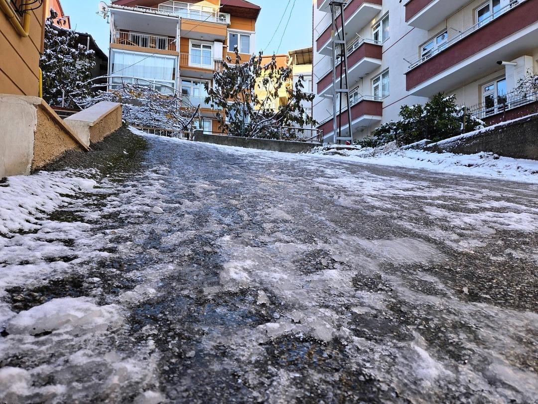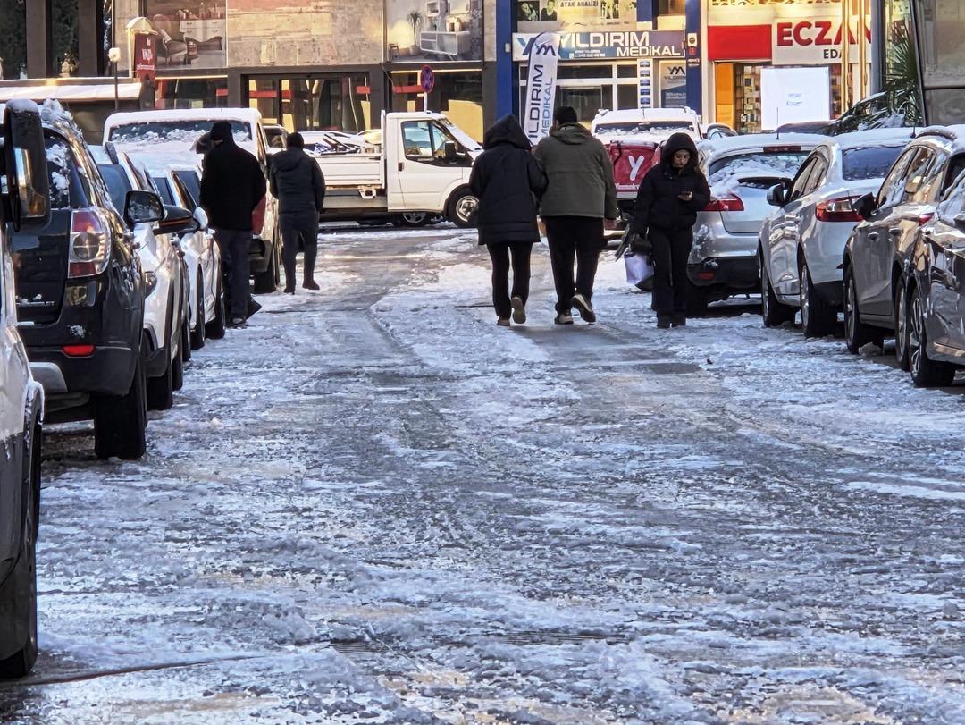 Sabah saatlerinde işlerine gitmek üzere evlerinden çıkan vatandaşlar, buzla kaplı kaldırımlar ve yollar nedeniyle ilerlemekte zorlandı.