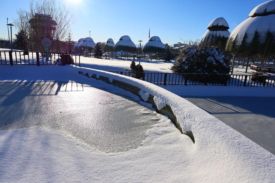 HAVA SICAKLIKLARININ EKSİ 13'Ü GÖRDÜĞÜ KENTTE SÜS HAVUZLARI DONDU