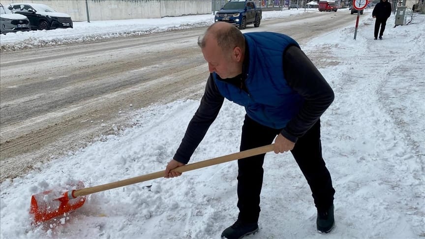 Yollar ve park halindeki araçlar karla kaplandı, vatandaşlar da kar temizliği yaptı.