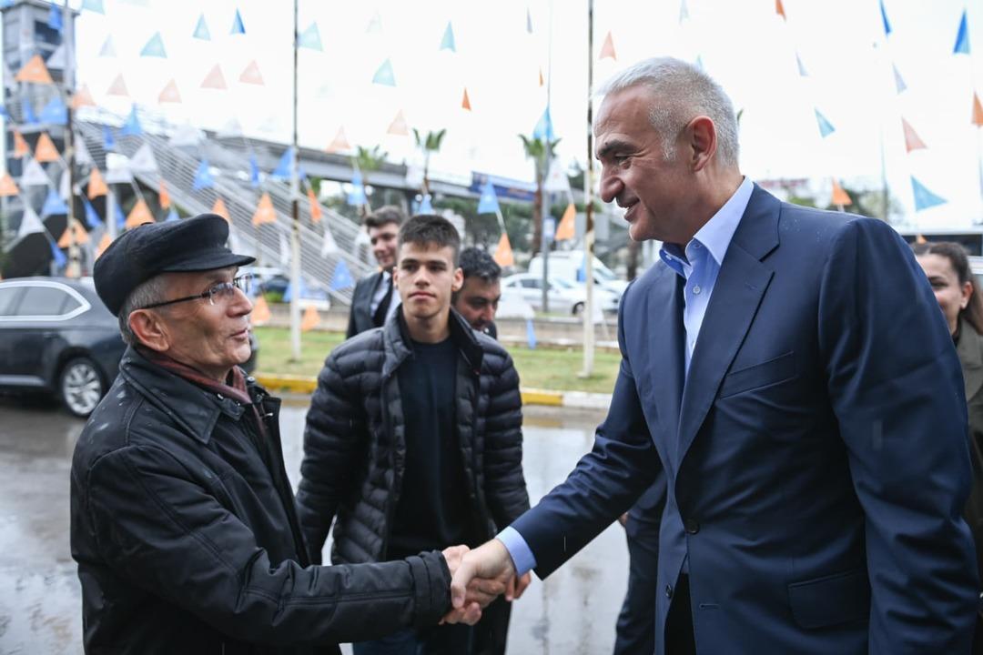 Ramazan Bayramı’nın ilk gününde Antalya’da bayramlaşma programlarına katılan Kültür ve Turizm Bakanı Mehmet Nuri Ersoy, gün boyunca farklı noktalarda esnaf, vatandaş ve AK Parti teşkilatıyla bir araya geldi. Bakan Ersoy, Belek’te taksici esnafıyla gerçekleşen geleneksel bayramlaşma programının ardından AK Parti Antalya İl Başkanlığını ziyaret etti. Teşkilat mensuplarıyla bir araya gelen Ersoy, il başkanlığı önünde vatandaşlarla da bayramlaştı.