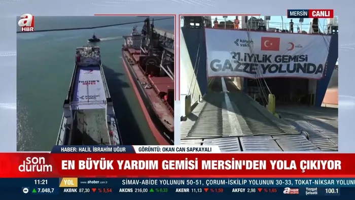 Gazze'deki insani yardım çalışmalarını sürdüren Türk Kızılay, yardımseverlerin katkılarıyla hazırlanan 21. İyilik Gemisi'ni Mersin Limanı'ndan Gazze'ye ulaştırılmak üzere yola çıktı.