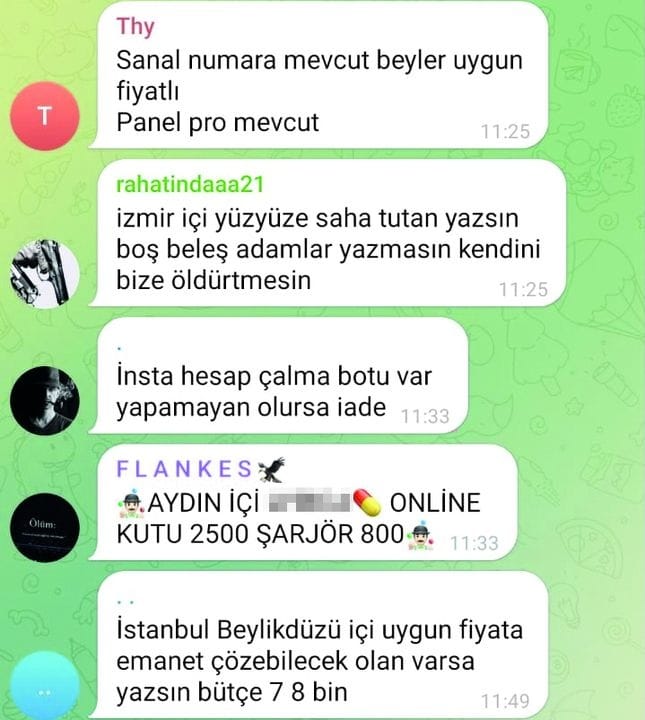 Türkiye'de organize suç eylemlerinin, şifreli mesajlaşma uygulamaları üzerinden kurulan gruplarda birer "hizmet" olarak pazarlandığına dair bulgular ortaya çıktı. Elde edilen ekran görüntülerine göre, yasa dışı faaliyetler Telegram gibi platformlarda açıkça ilan edilerek alıcı buluyor.