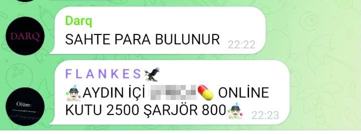 İL VE FAALİYETLERE GÖRE İLANLAR VERİLİYORPaylaşımlar arasında, "İstanbul içi acil tetikçi aranıyor dm" ve "Ev/dükkan farketmeksizin ister 1 ister 1'den fazla kişi ekip ile kurşunlama yapılır" gibi doğrudan yasa dışı eylemlere yönelik çağrılar bulunuyor. İlanlarda, "Ankara içi kuryelik" veya "İstanbul içi darp, kundaklama, kurşunlama" gibi farklı "hizmetler" için tarifeler sunuluyor. Ayrıca, "Bulgar'a geçiş 3000 €" gibi insan kaçakçılığına yönelik tekliflerin de yer aldığı belirtiliyor. Sunulan hizmetler arasında uyuşturucu ve silah satışı, kişisel verilere ulaşma, sahte kimlik, para ve pasaport temini gibi çok çeşitli yasa dışı faaliyetler de bulunuyor.