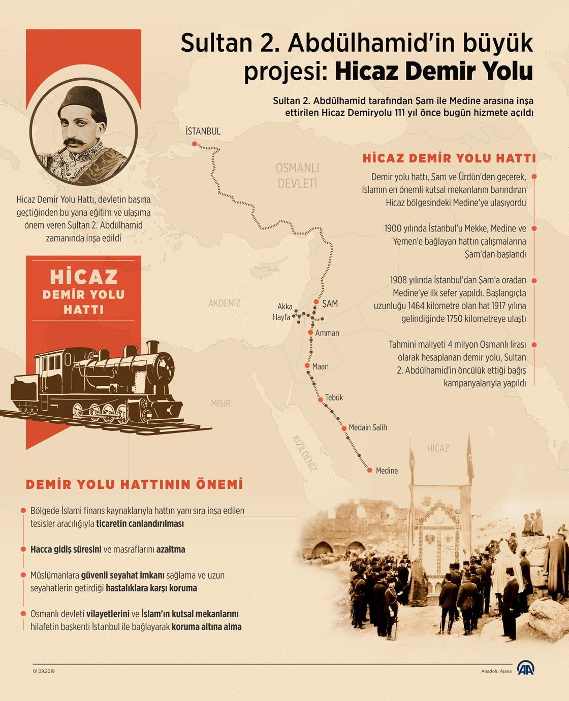 1 Eylül 1900'de temeli atılan hat, Abdülhamid'in tahta çıkışının 25. yılına denk geldi. Şam'dan başlayarak Medine'ye kadar uzanan 1464 kilometrelik demiryolu, hac yolculuğunu kolaylaştırmasının yanı sıra Osmanlı'ya askeri ve ekonomik katkılar sağladı.